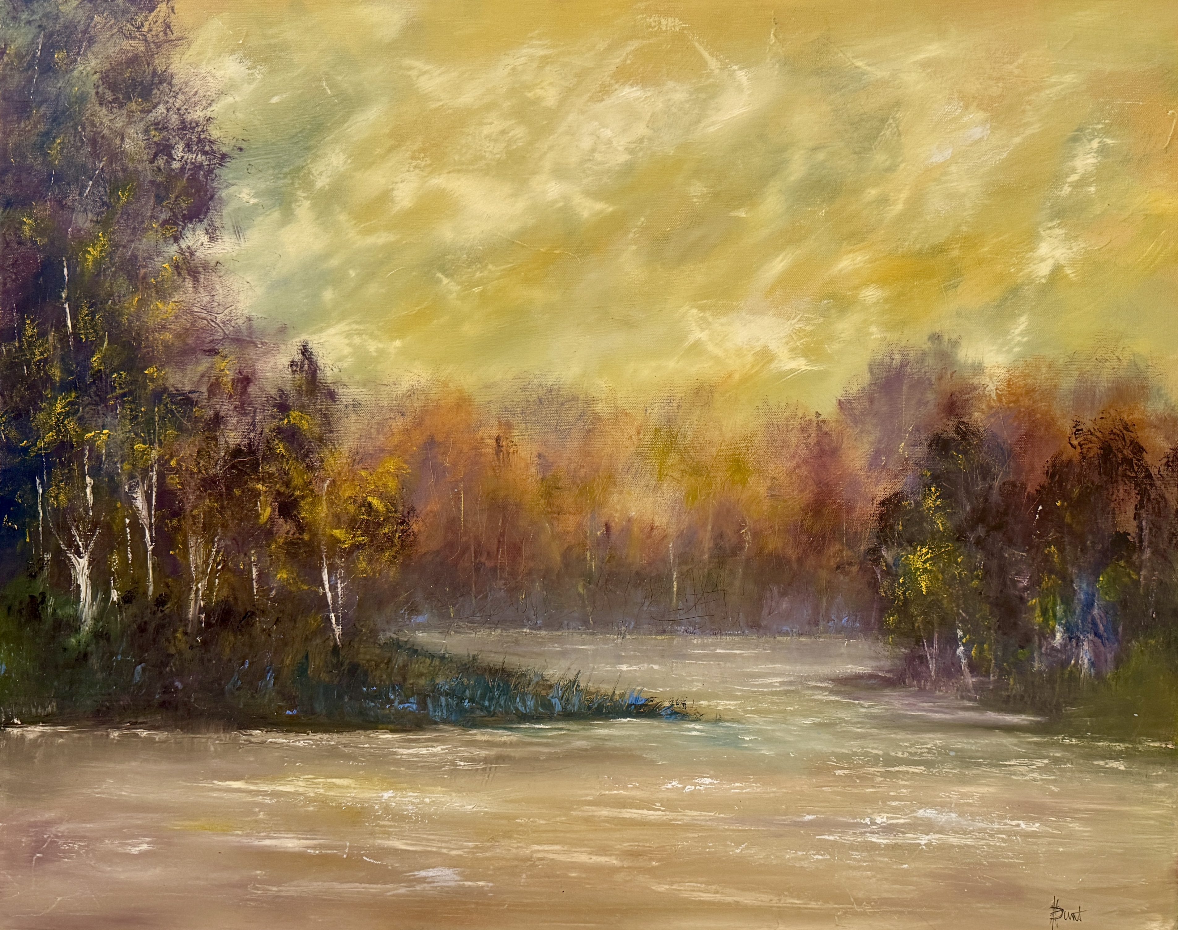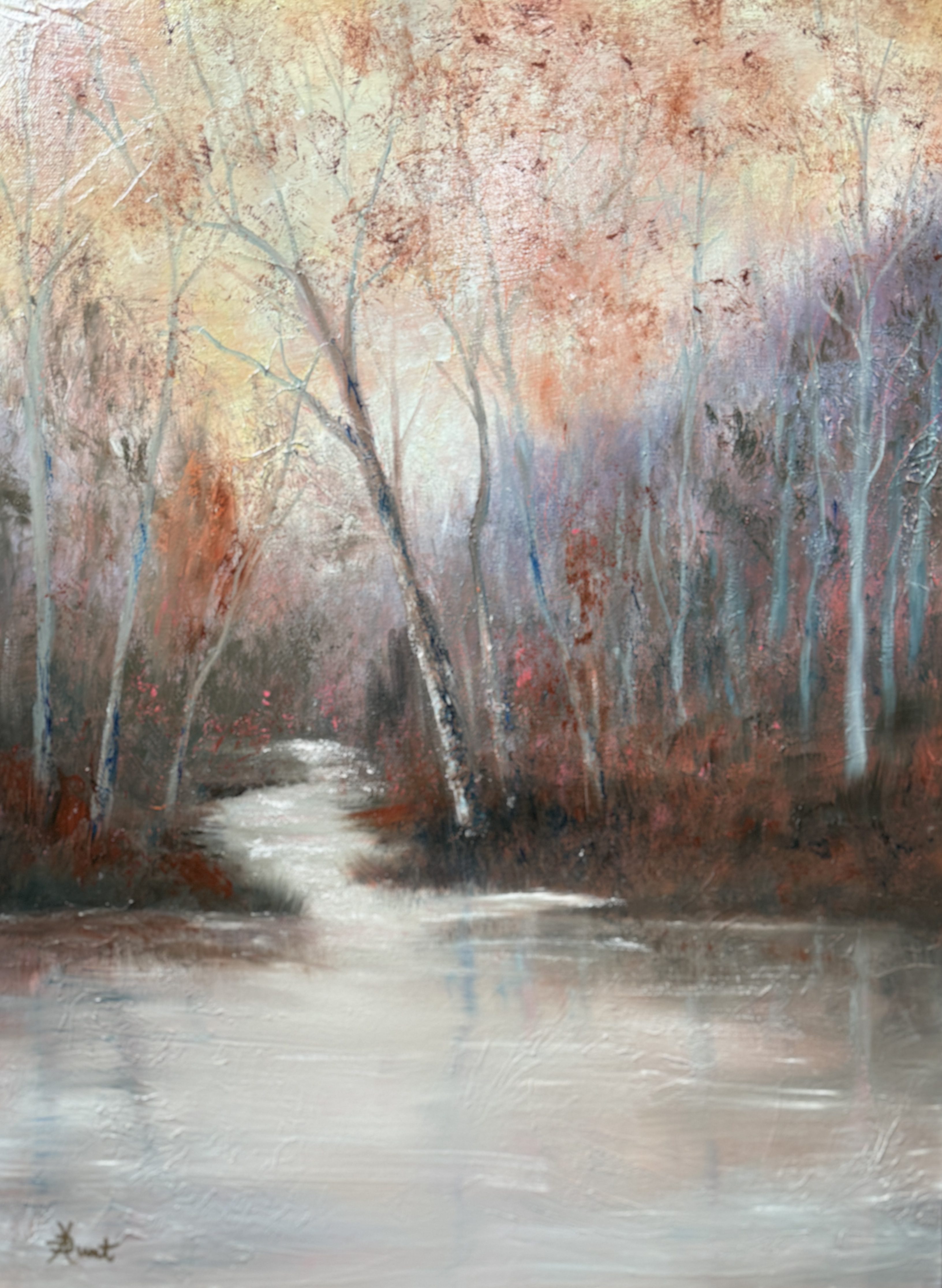 Whether it is a meadow, lake, forest, or stream the natural landscape is where I find peace and tranquility. Here in my paintings, you will find yourself in serene and idyllic places of my imagination.